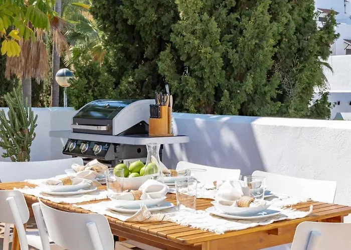 The kitchen amenities at Ultimate Rentals - Charmant Appartement Met Groot Terras In Estepona villa feature an electric kettle, a fridge, and glassware, provided in an outdoor dining area. El Gourmet is a fast food restaurant serving European dishes a short way from the property. Ultimate Rentals - Charmant Appartement Met Groot Terras In Estepona villa is also about a 10-minute stroll from Hacienda Beach bus station.